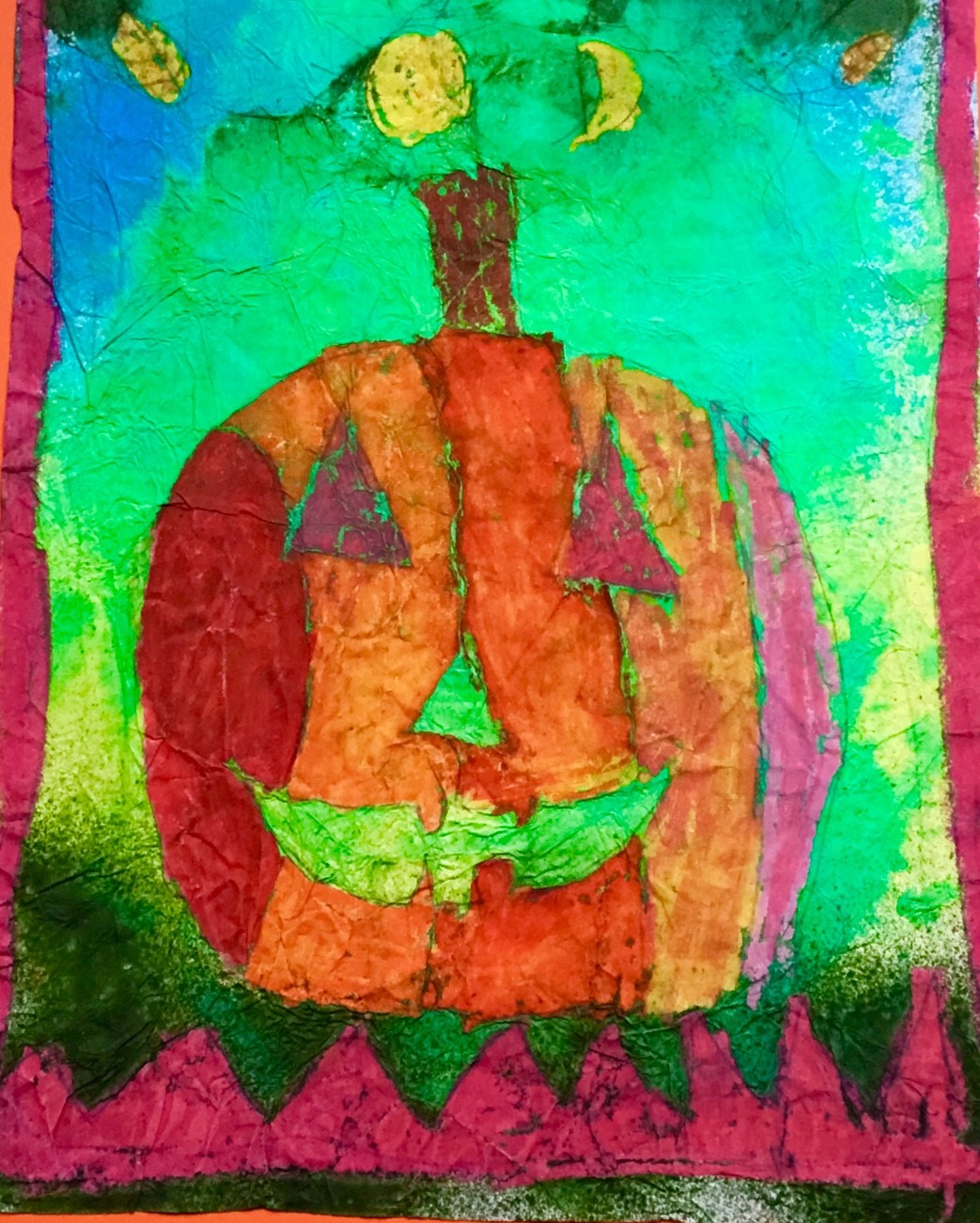 Batik sur papier avec encre et pigments
